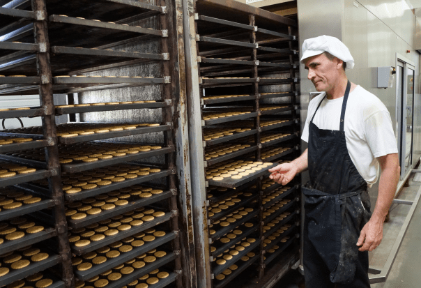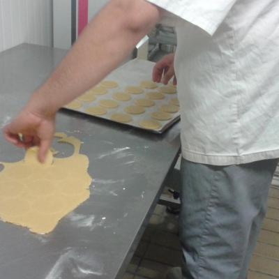 Ensuite les petits sablés sont formés, estampillés et déposés sur plaques de métal.